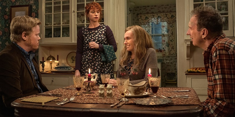 Charlie Kaufman dirige y escribe su tercera película tras Anomalisa y Synecdoche, New York y de nuevo vuelve a realizar una obra críptica que se aleja de los estándares del Hollywood más comercial. Guionista de grandes films de Spike Jonze y Michel Gondry, es en solitario cuando sus propuestas se tornan más complejas y personales. Estoy pensando en dejarlo es una gran prueba de ello, un film que no ofrece concesiones al espectador. El viaje de ida y vuelta en coche de una pareja para conocer a los padres de éste y la propia cena en la casa familiar se convierten en un profundo estudio de la soledad, de la influencia de la cultura y el arte en nuestra personalidad y de la distorsión e influencia de los recuerdos en nuestro presente, pasado y futuro. Todo mostrado a través de largas conversaciones entre los personajes, de imágenes cargadas de simbolismo y de una desintegración del tiempo y el espacio en el que múltiples géneros se abren paso a lo largo del metraje. No es una película cómoda a la que enfrentarse, tiene un ritmo pausado, una verborrea extenuante y no ofrece respuestas sencillas a los enigmas que plantea, sin embargo consigue generar un desconcierto y una constante reflexión sobre lo que sucede en pantalla, convirtiendo la experiencia en la resolución de un rompecabezas que no parece tener solución. Una historia profundamente triste enmarcada en un universo muy particular, con el sello particular de un autor poco convencional.