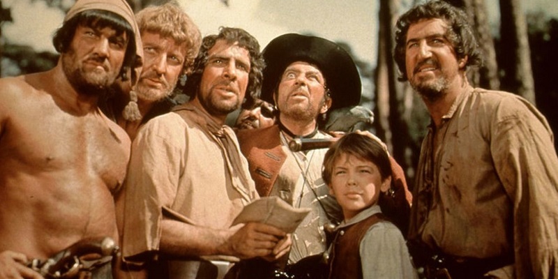 La isla del tesoro, la famosa novela de Robert Louis Stevenson, ha sido adaptada a la gran pantalla en múltiples ocasiones. Una de las más recordadas es la versión de Byron Haskin de 1950, película que supuso para Disney introducirse en uno de los primeros grandes rodajes con actores reales, lejos de sus habituales propuestas de animación. El film no consigue trasladar la grandeza de la obra original, pero resulta un divertimento apto para toda la familia en el que brilla por encima de todo y de todos la actuación de Robert Newton como el perspicaz pirata Long John Silver. La icónica imagen del pirata con pata de palo, sonrisa torcida, loro en el hombro y de pensamientos maquiavélicos se refleja a la perfección en la caricaturizada actuación del actor británico. Tanto la novela original como el propio film de Disney, se centran en el punto de vista del joven Haxkins, quien se ha de enfrentar a un mundo cruel que no acaba de comprender, debido a su ingenuidad y confianza perpetua en los demás, pero que poco a poco se irá forjando su carácter provocando la inevitable pérdida de la inocencia. En la película la relación entre ambos resulta un tanto desdibujada, dejando una sensación de ambigüedad y de forzar determinadas situaciones que no acaban de encajar del todo. El film cuenta con una modesta pero eficiente producción, en las que destacan el gran barco pirata, el vestuario de la tripulación y unos maravillosos fondos pintados a mano que se diluyen con la realidad. Quienes desconozcan el relato original, un aviso: el film se centra más en el enfrentamiento entre tripulación y piratas que en las propias aventuras que provoca la búsqueda de un tesoro. Bobby Driscoll, el actor que encarna al joven Jim, fue un habitual de las películas de Disney e incluso dio voz al mítico Peter Pan, pero cayó en las manos de la heroina y el alcohol, falleciendo a los 31 años de edad. Otro juguete roto en la larga lista de Hollywood.