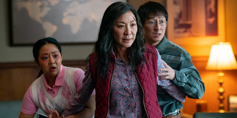 Reparto principal: Michelle Yeoh, Jamie Lee Curtis, Jonathan Ke Quan y James Hong
